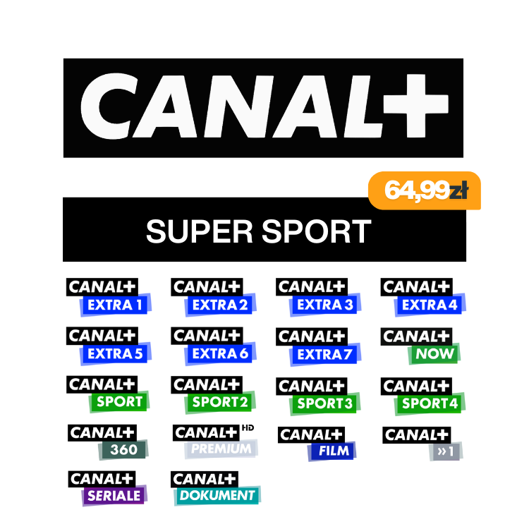 6 kanałów premium bez reklam, pełnych świeżych premier, kultowych hitów i ekskluzywnych produkcji: CANAL+ Premium, CANAL+1, CANAL+ Film, CANAL+ Seriale, CANAL+ Dokument, CANAL+ 360.